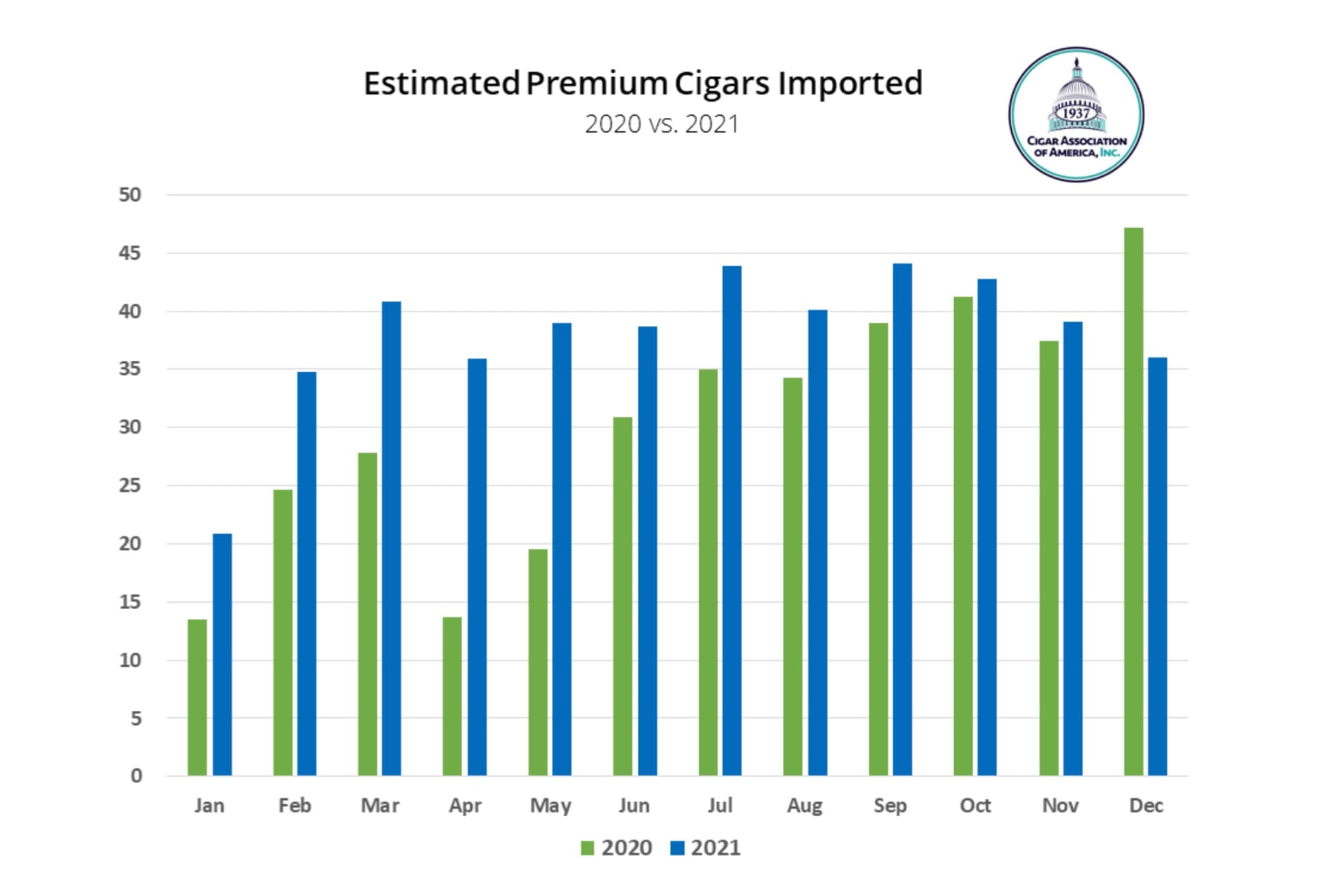 The good news: the U.S. imported more premium cigars in 2021 than any year since the CAA started measuring this data.